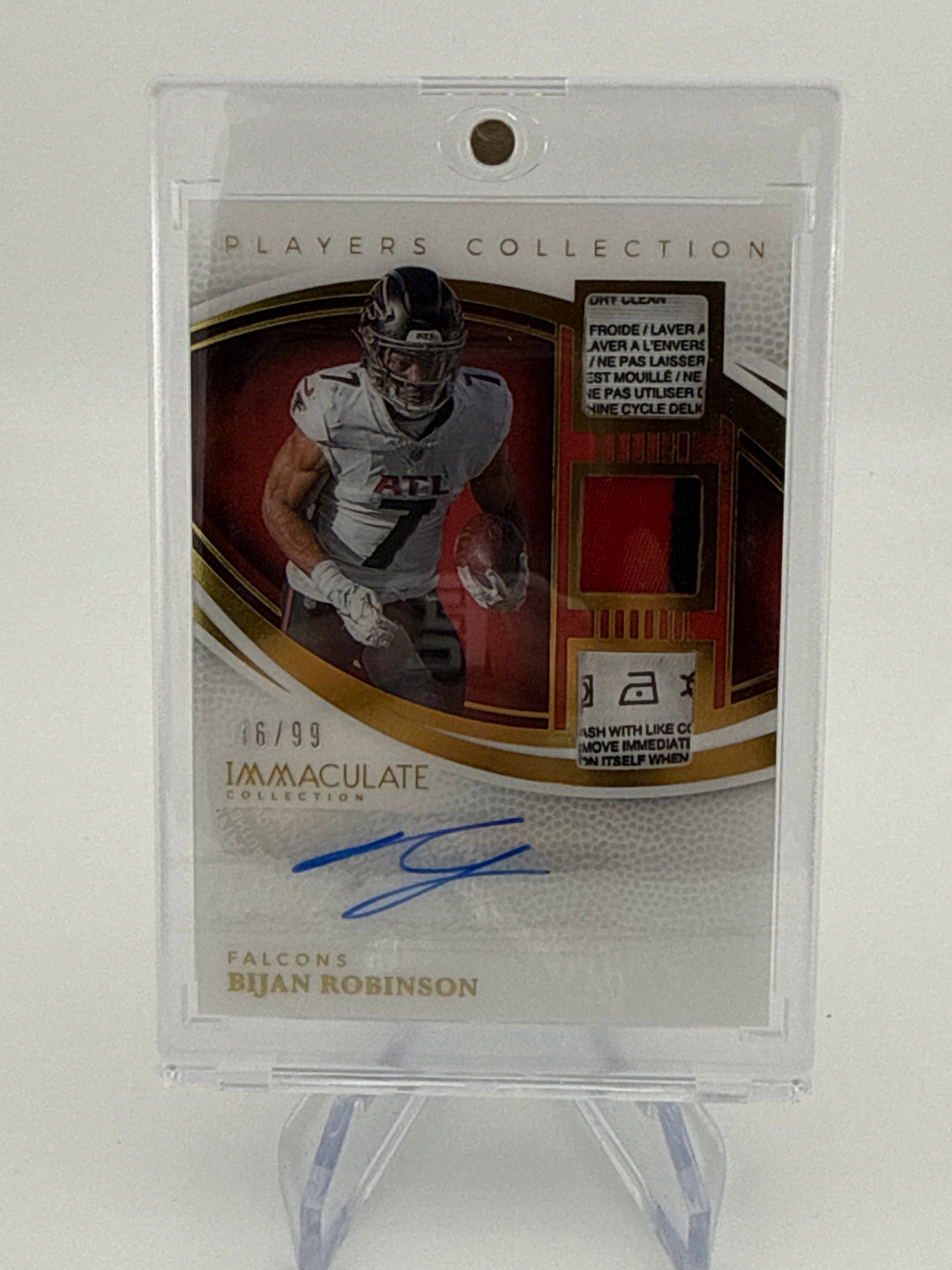 Bijan Robinson 2025 Panini Immaculate Players Collection Triple Patch Laundry Tag Auto, 46/99