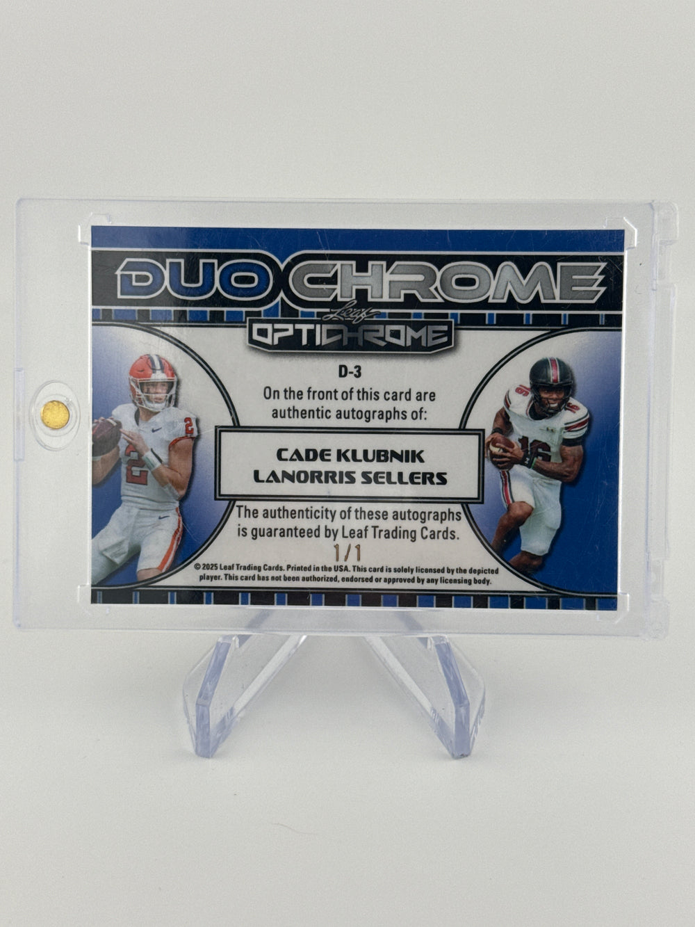 Cade Klubnik/Lanorris Sellers 2025 Leaf Optichrome Duo Chrome 1/1 Auto
