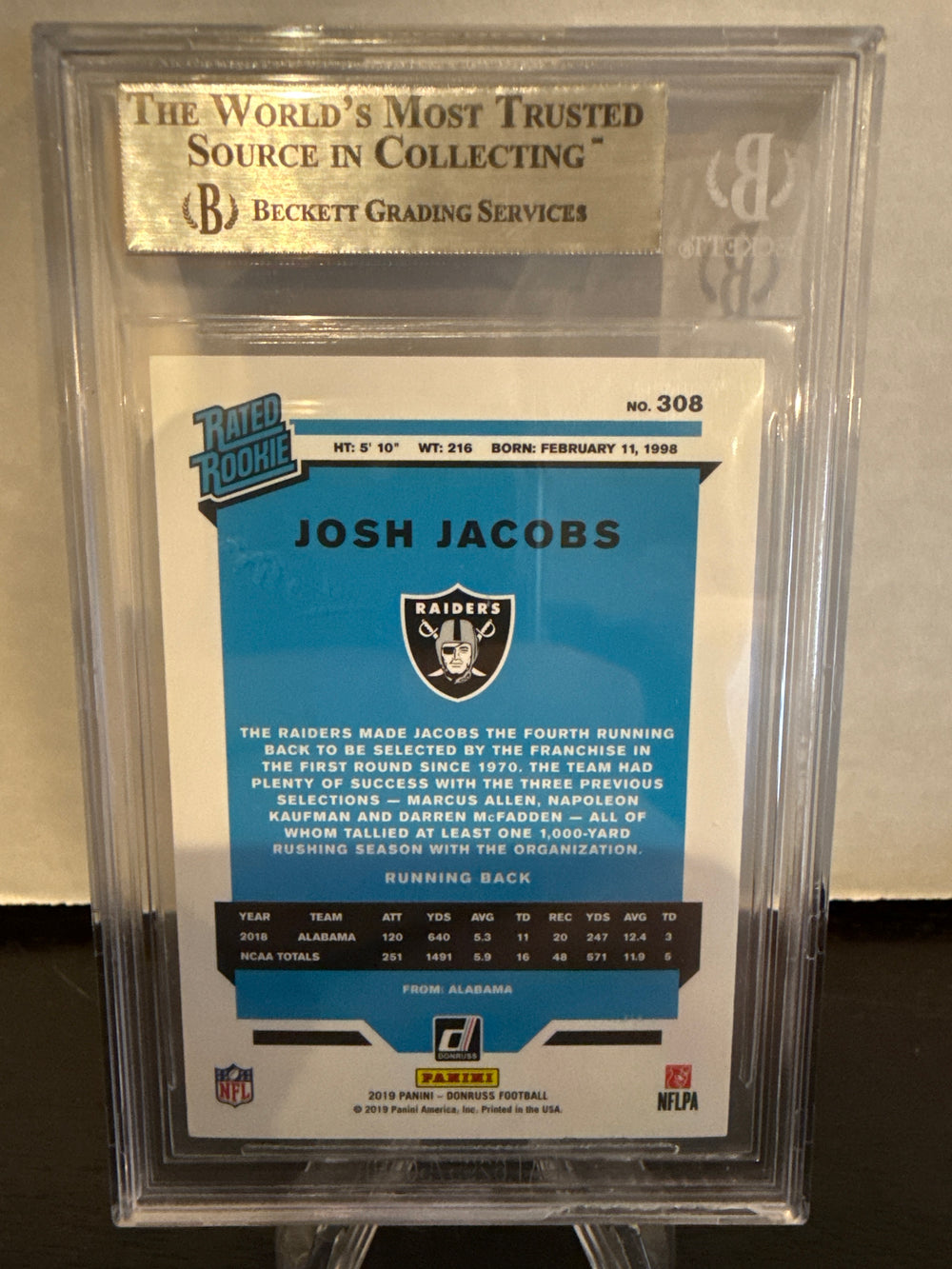 Josh Jacobs 2019 Panini Donruss Rated Rookie, BGS Authentic Auto