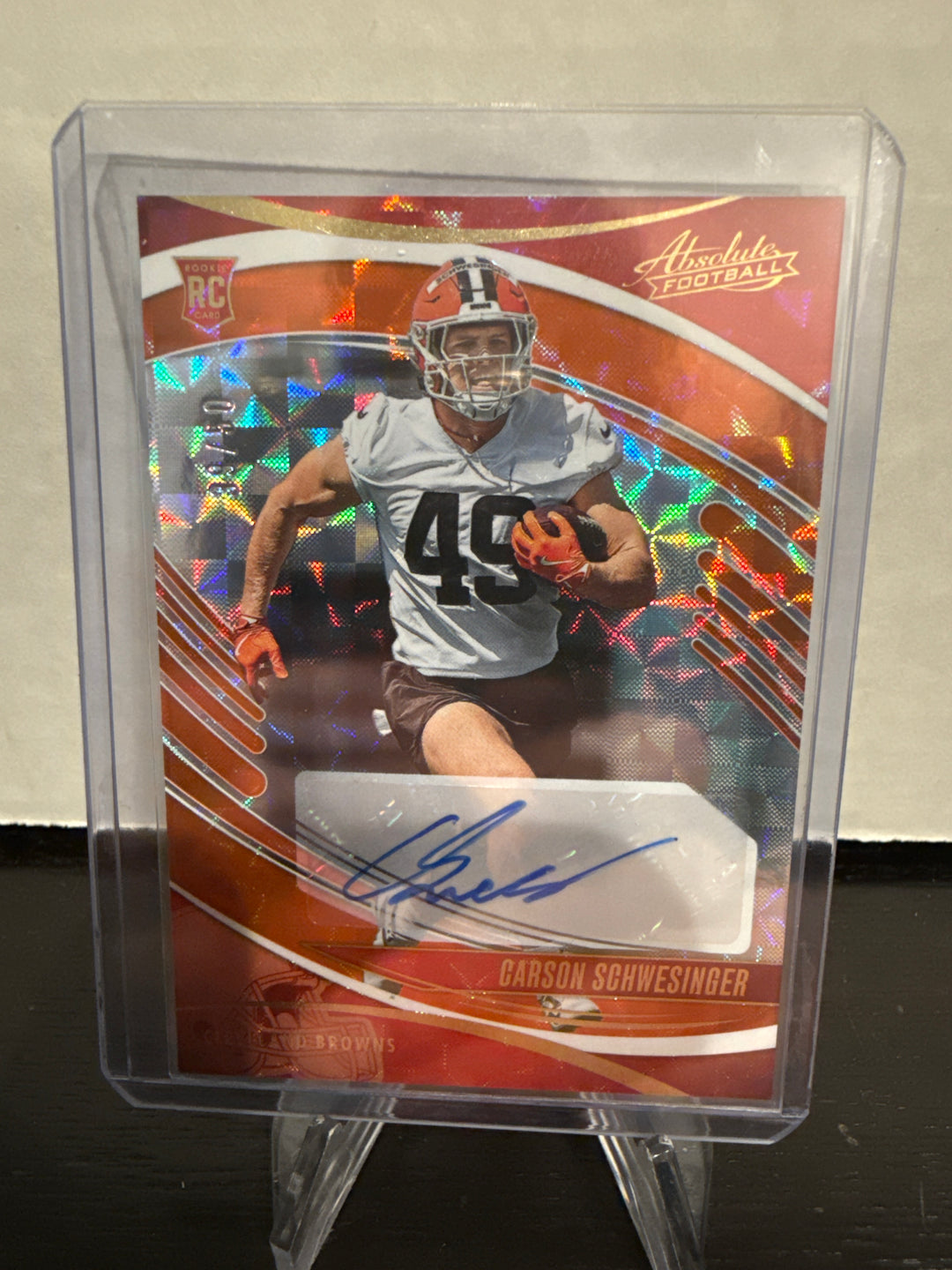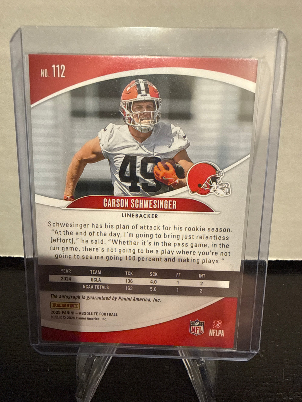 Carson Schwesinger 2025 Panini Absolute Rookie Auto Orange Spectrum, 39/50
