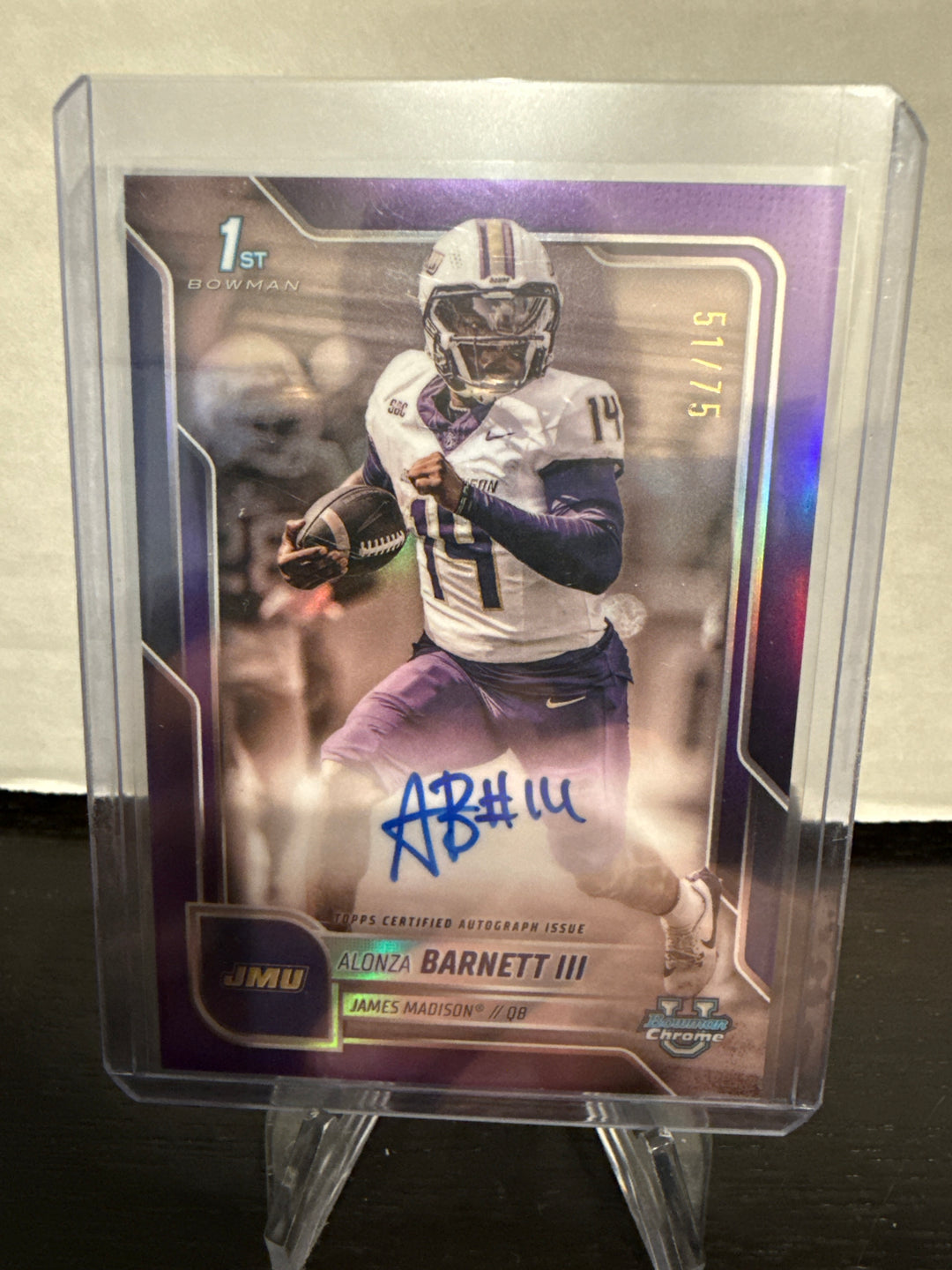Alonza Barnett 2025 Bowman University Chrome 1st Prospect Purple Refractor Auto, 51/75