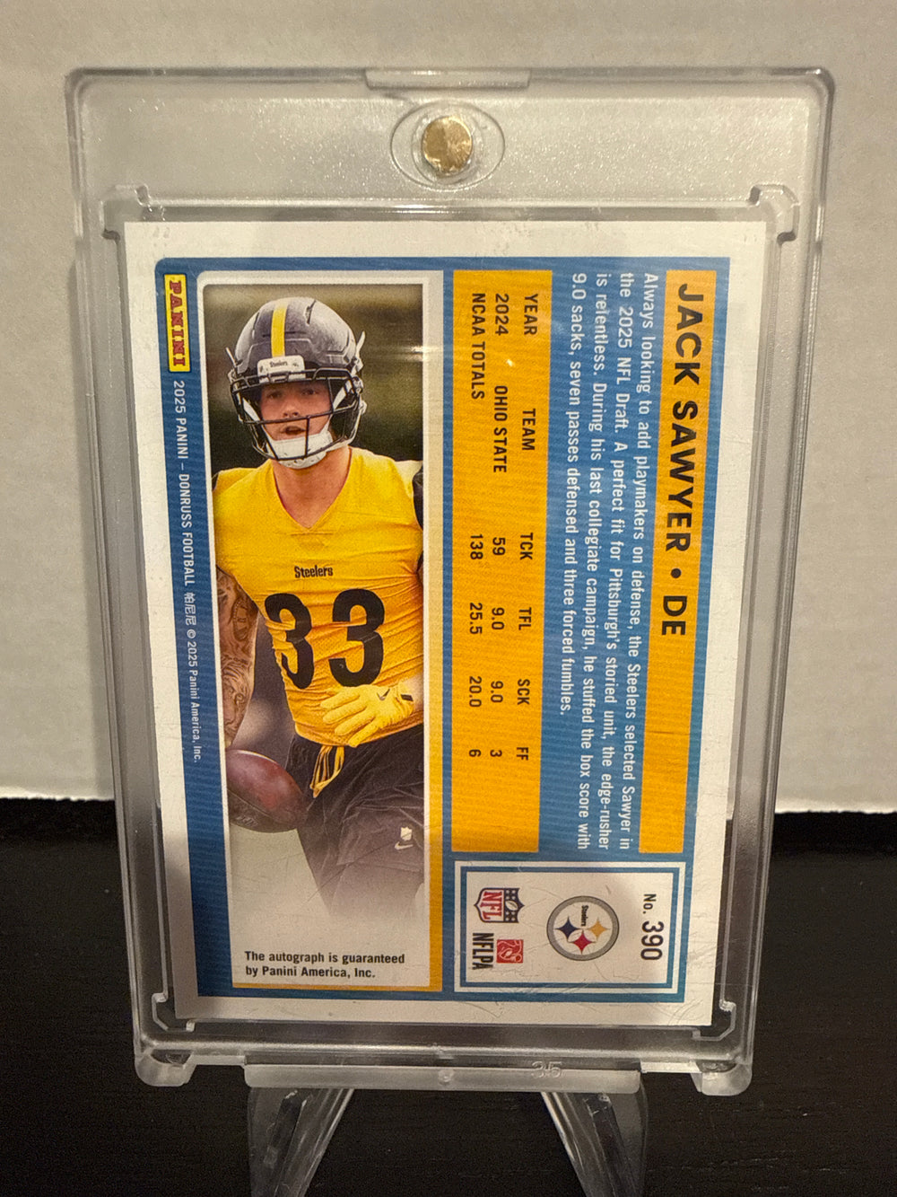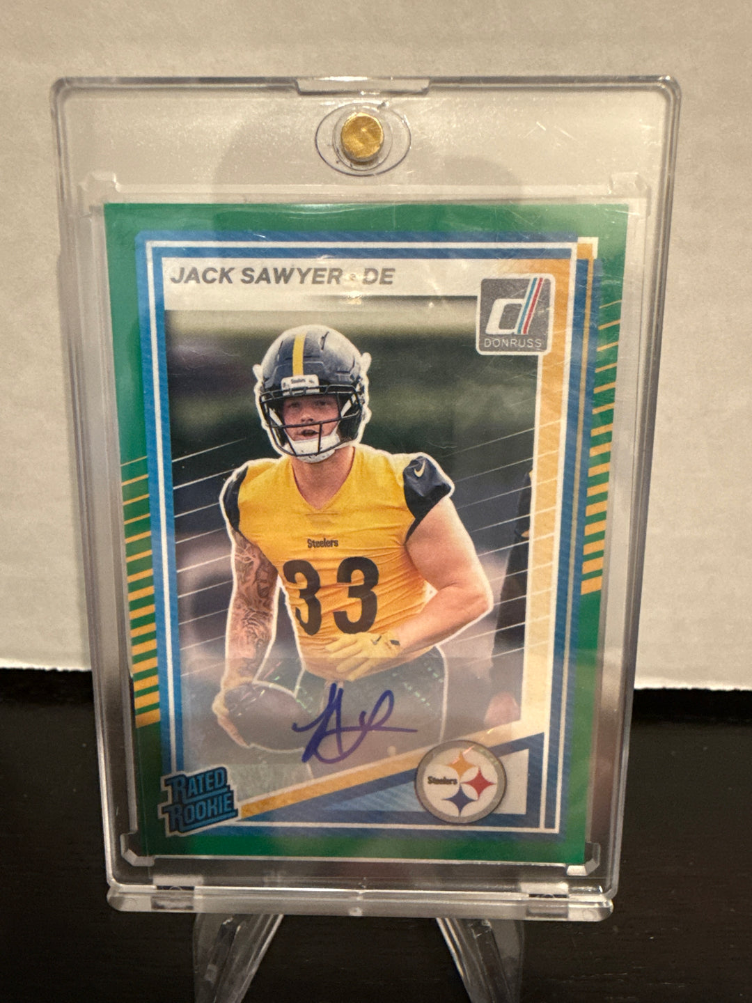 Jack Sawyer 2025 Panini Donruss Rated Rookie Green Border Auto
