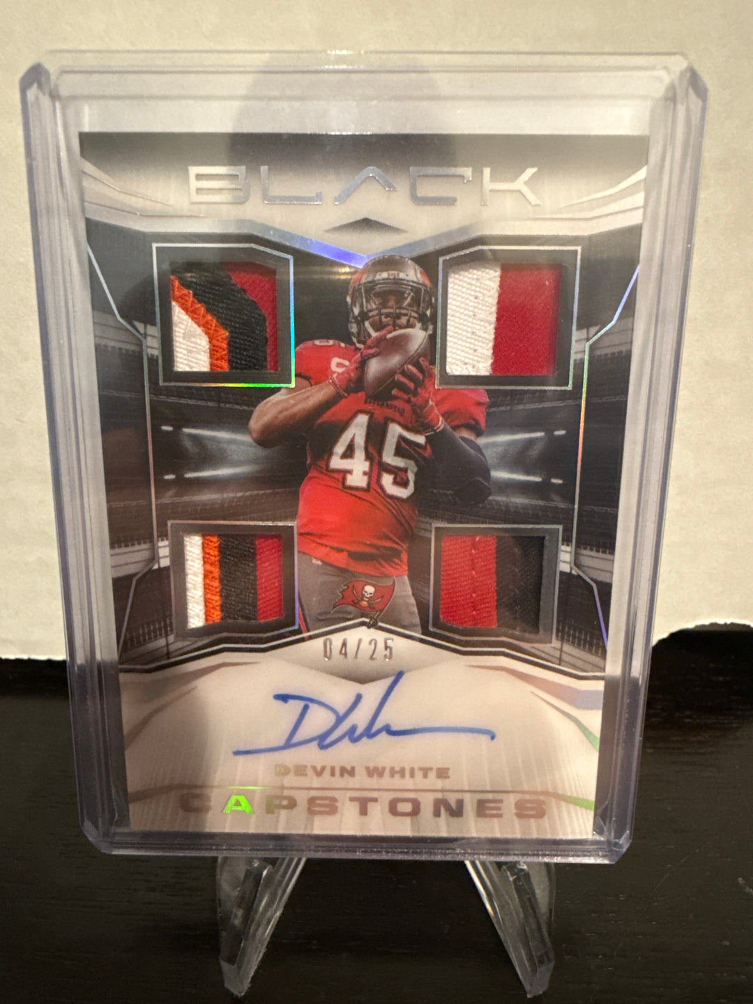 Devin White 2022 Panini Black Capstones Quad Game Used Patch Auto, 04/25