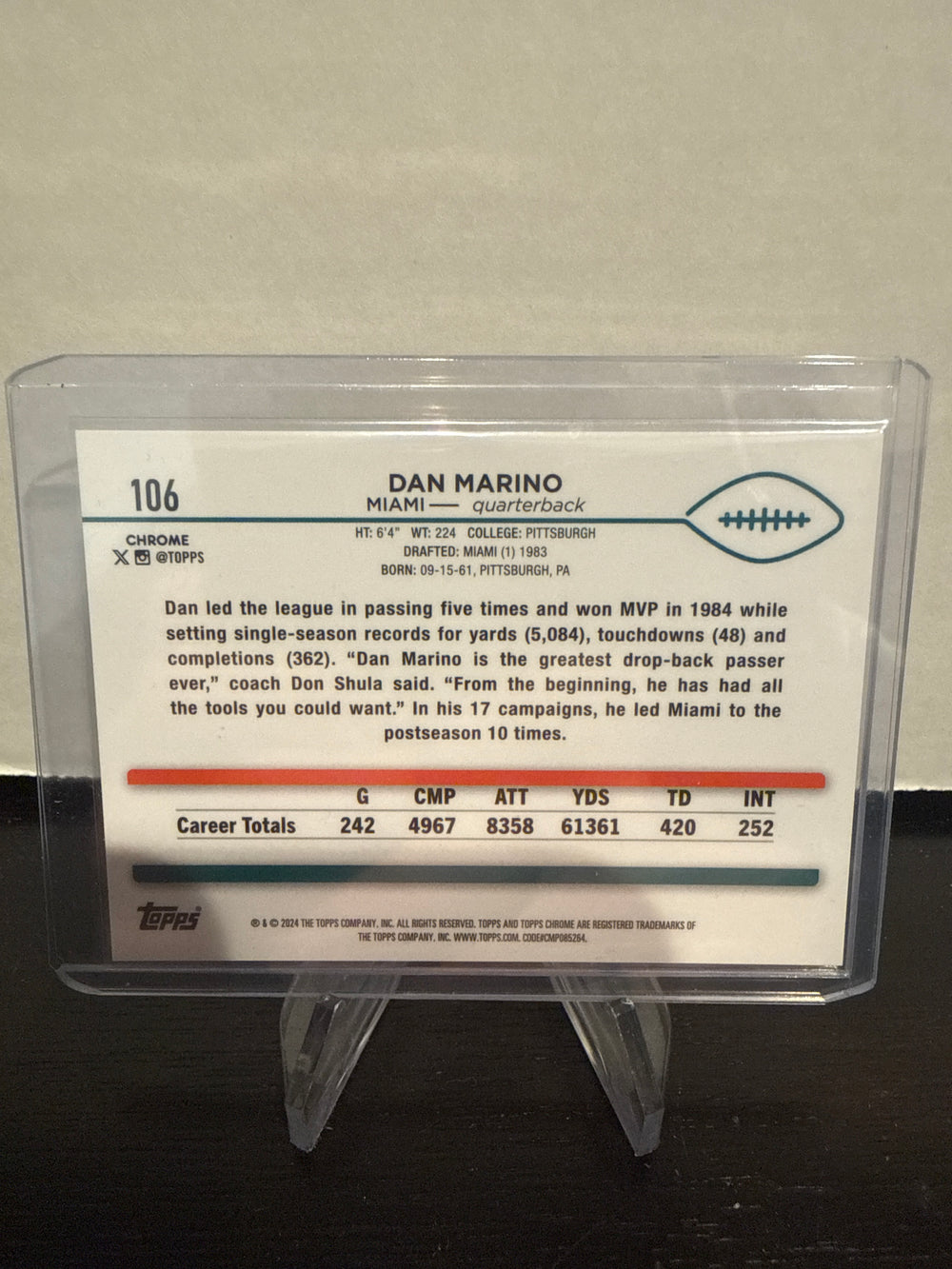 Dan Marino 2024 Topps Chrome Orange Wave Refractor, 16/25