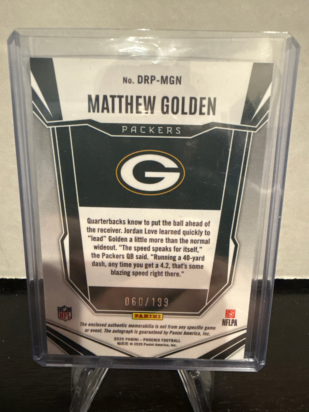 Matthew Golden 2025 Panini Phoenix Bronze Pandora Rookie Patch Auto, 060/199