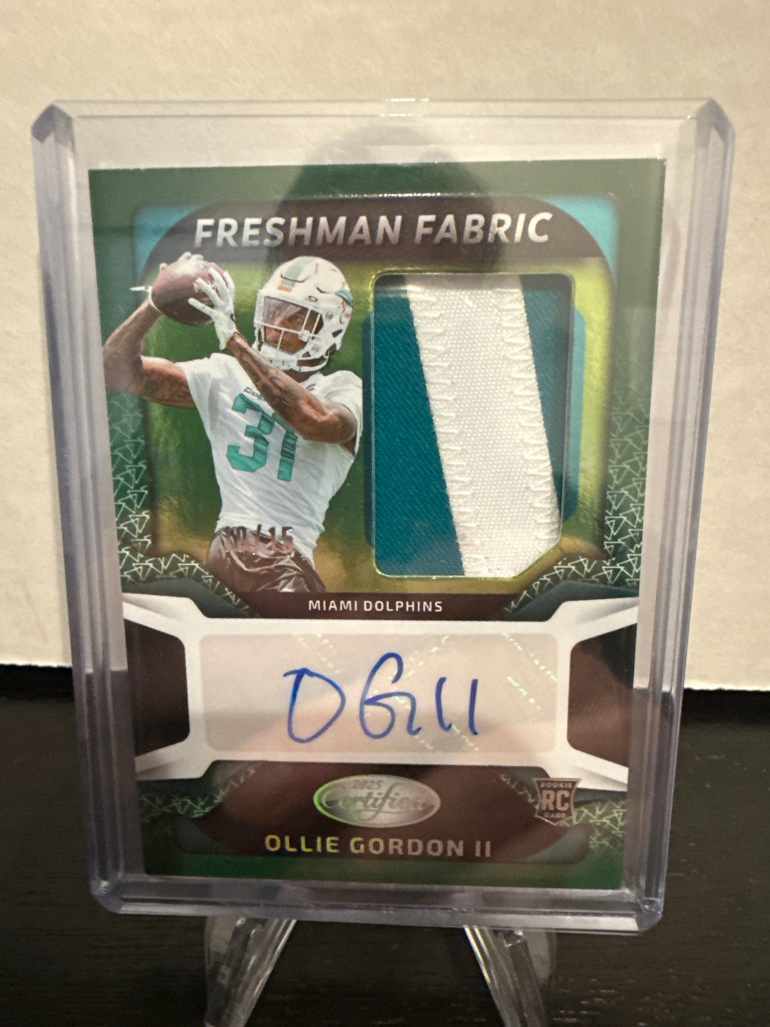 Ollie Gordon 2025 Panini Certified Freshman Fabric Rookie Patch Auto Green, 10/15