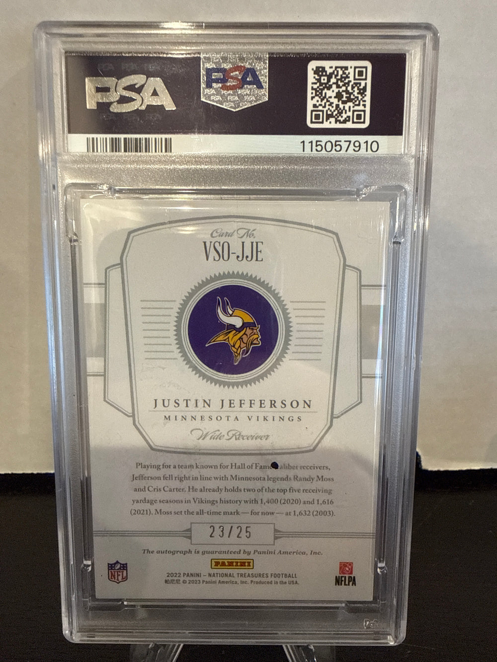 Justin Jefferson 2022 Panini National Treasures Virtuoso Auto, 23/25, PSA 9 Mint, PSA 10 Gem Mint Auto