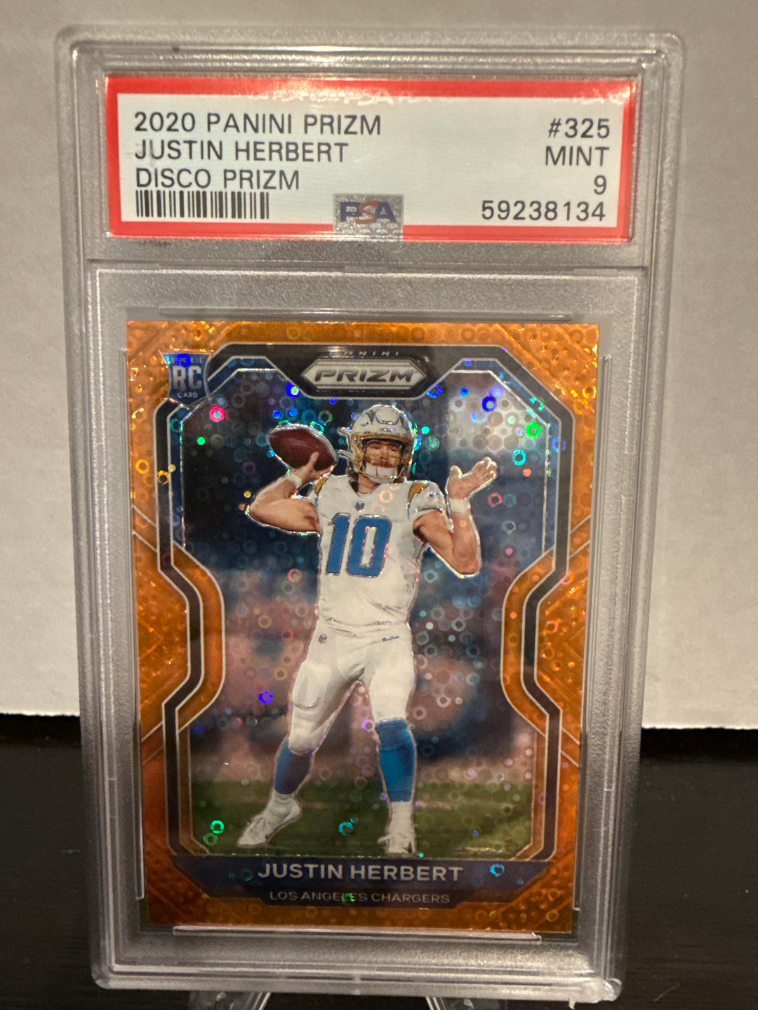 Justin Herbert 2020 Panini Prizm Orange Disco Prizm Rookie, PSA 9 Mint