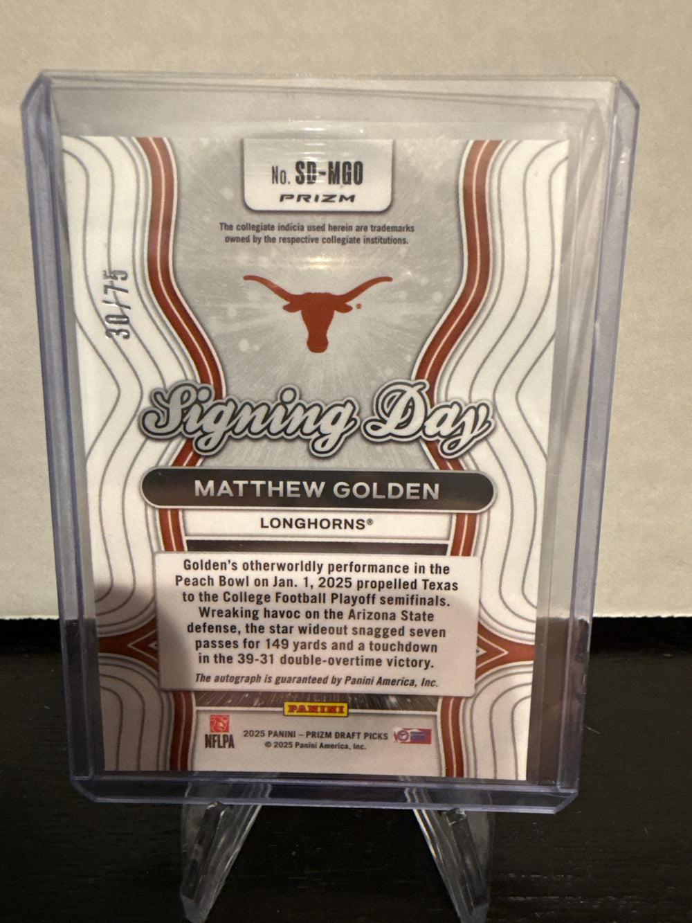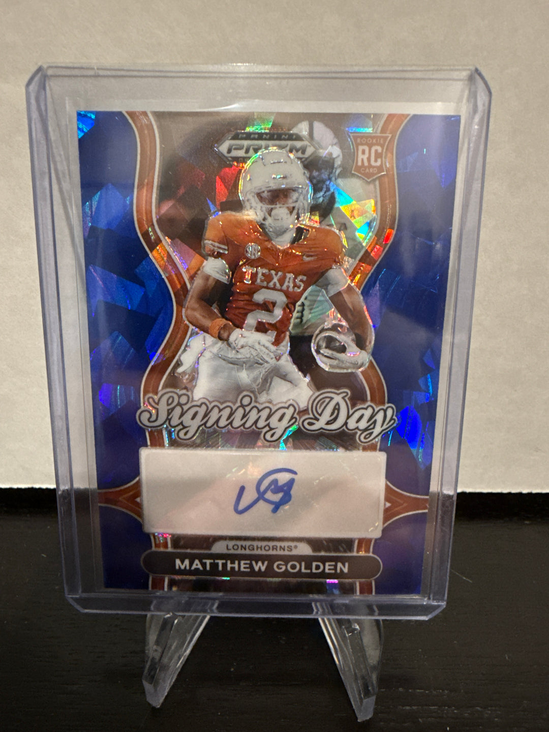 Matthew Golden 2025 Panini Prizm Draft Picks Blue Ice Signing Day Rookie Auto, 30/75