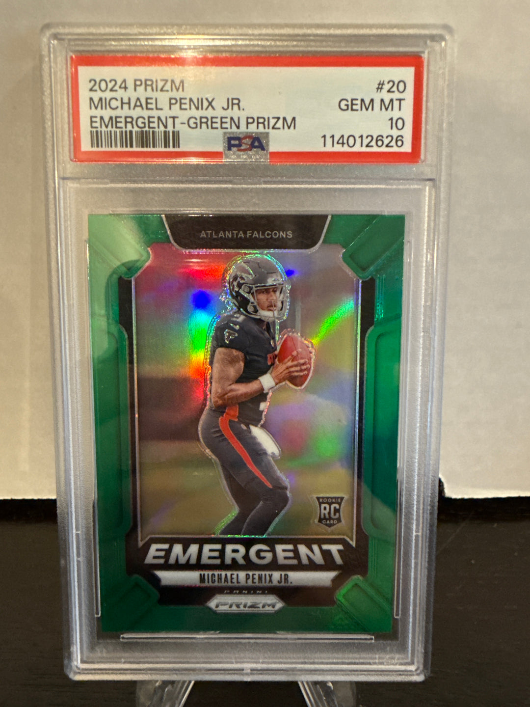Michael Penix Jr 2024 Panini Prizm Emergent Green Prizm Rookie, PSA 10 Gem Mint