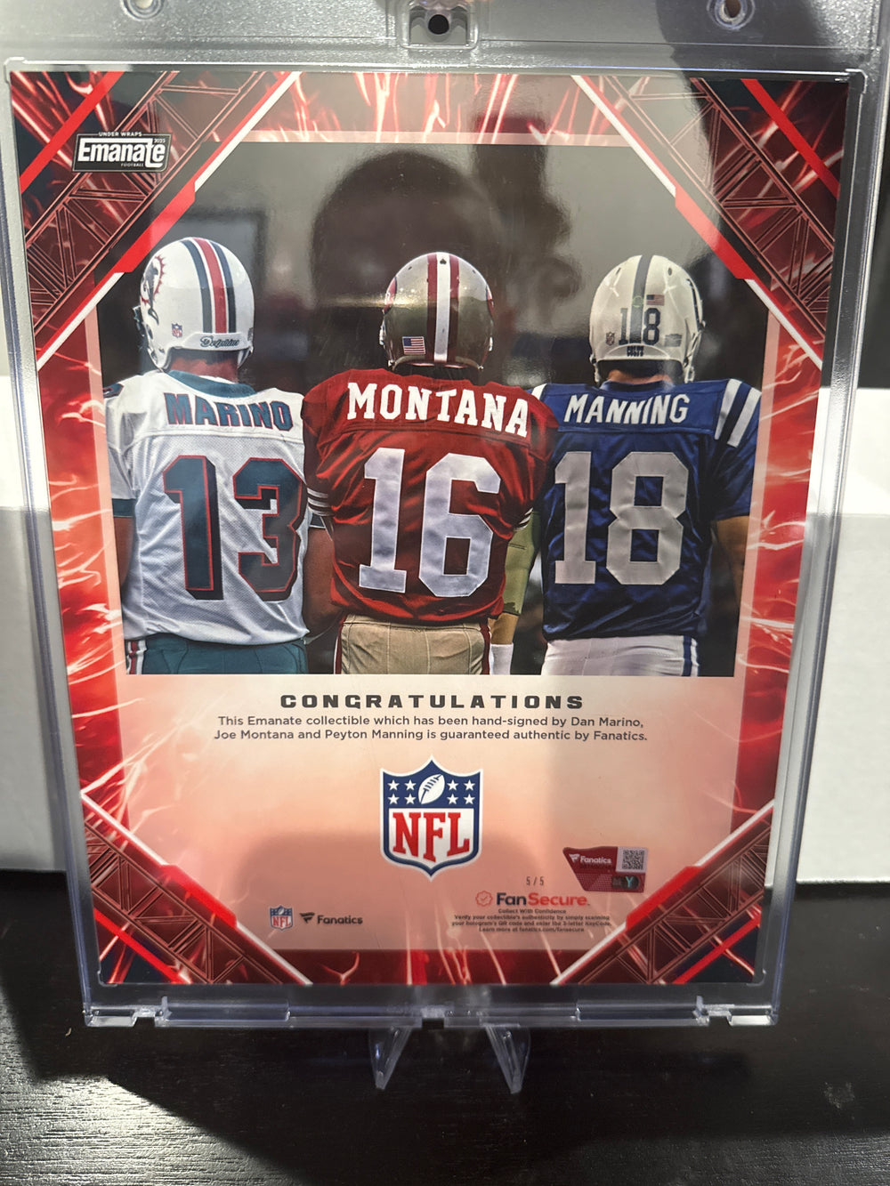 Dan Marino/Joe Montana/Peyton Manning 2025 Fanatics Emanate 8X10 Autograph Red, 5/5