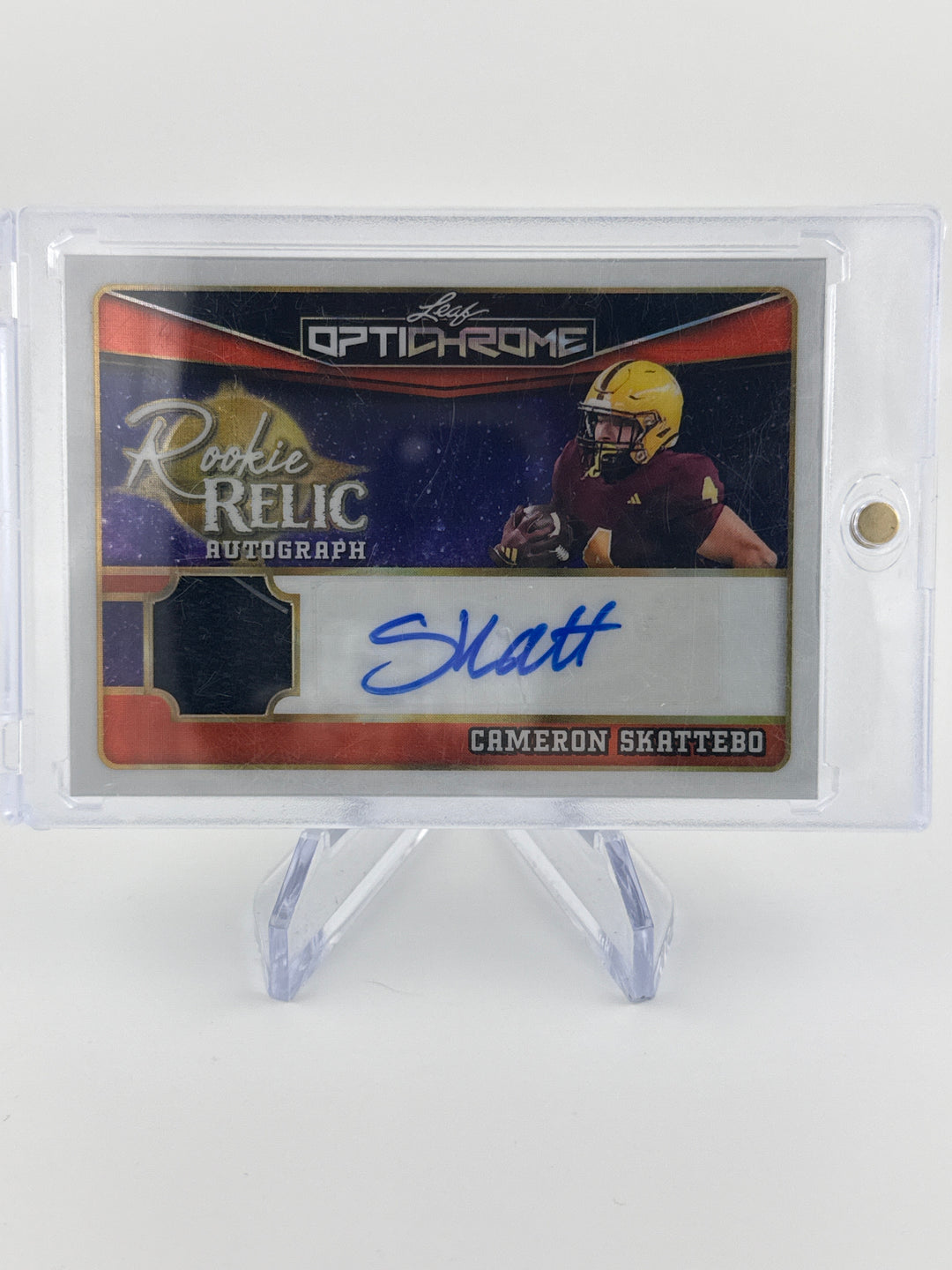 Cameron Skattebo 2025 Leaf Optichrome Rookie Relic Auto, 1/4