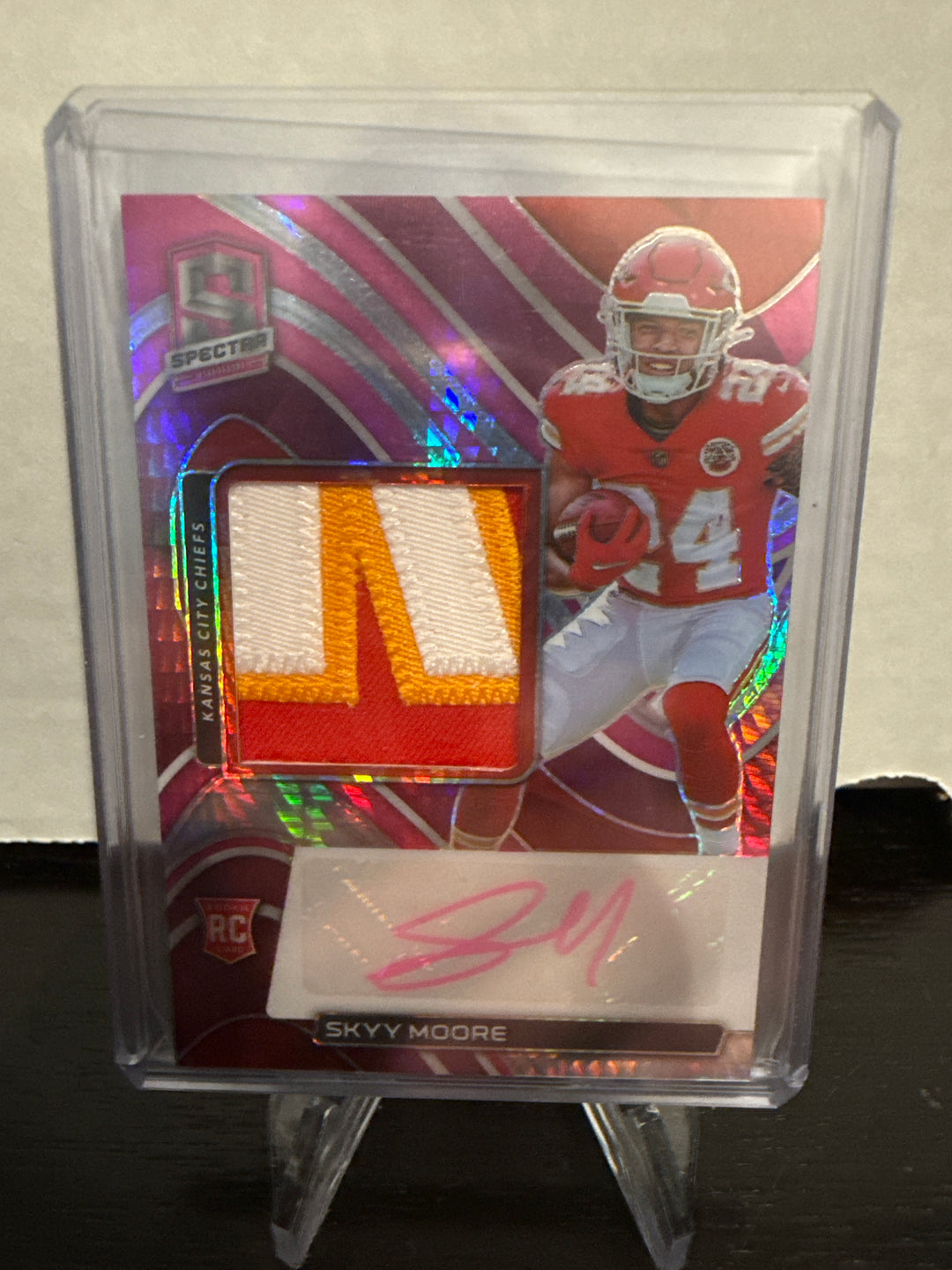 Skyy Moore 2022 Panini Spectra Rookie Patch Auto Neon Pink, 25/25