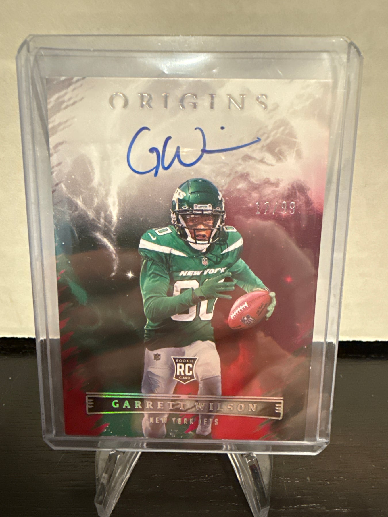 Garrett Wilson 2022 Panini Oringins Rookie Auto Red, 17/99, Card Number RAUGWICard Stand sold separately.