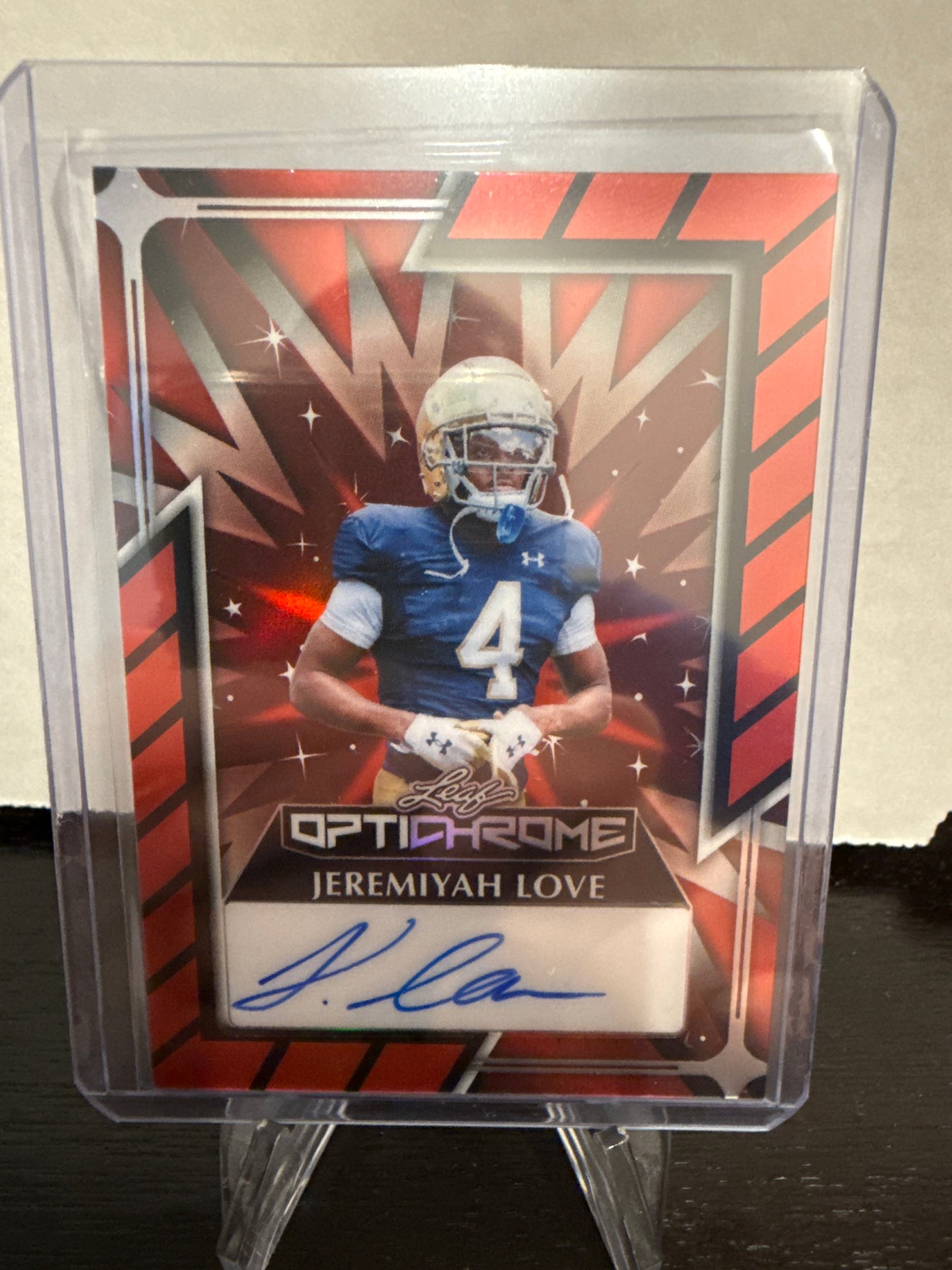 Jeremiyah Love 2024 Leaf Optichrome Red Prizm Refractor Auto, 9/9, Card Number OJL2