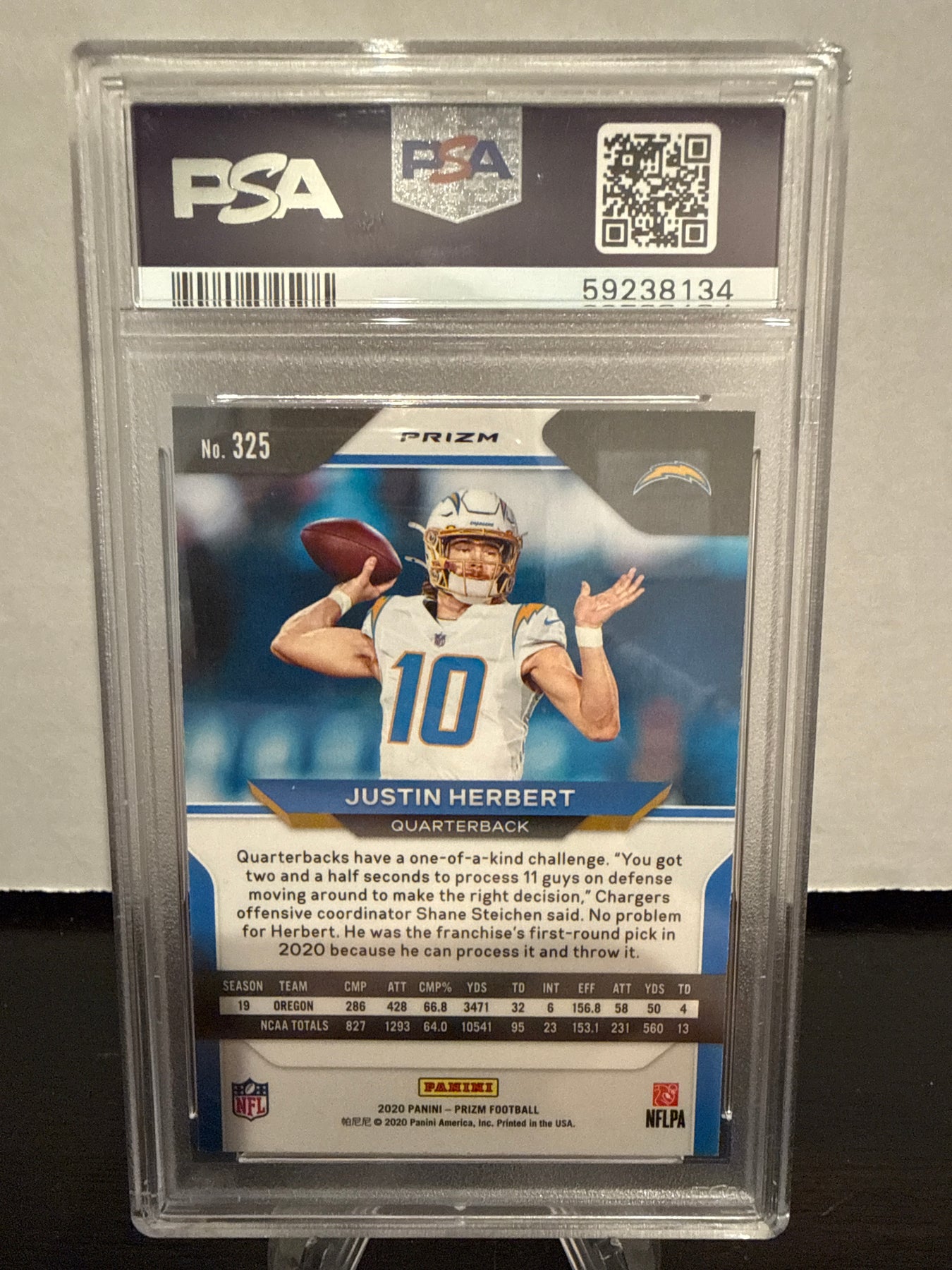 Justin Herbert 2020 Panini Prizm Orange Disco Prizm Rookie, PSA 9 Mint, Card Number 325