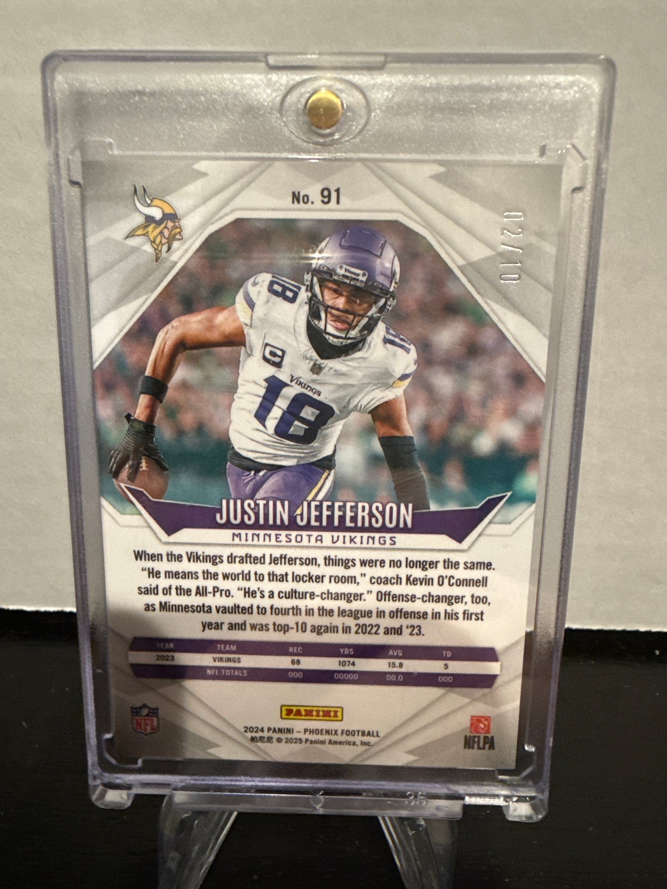 Justin Jefferson 2024 Panini Phoenix Gold Hyper, 02/10, Card Number 91Card Stand sold separately.