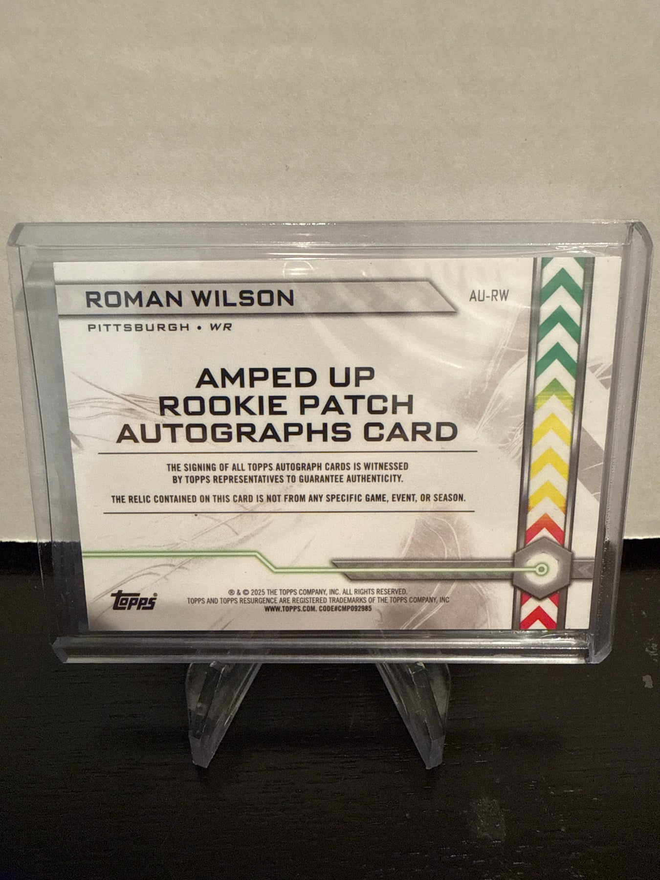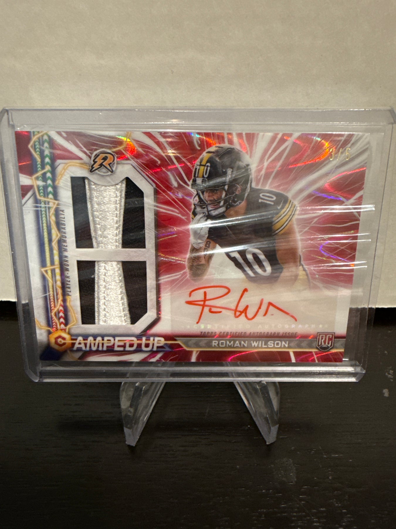 Roman Wilson 2024 Topps Resurgence Amped Up Rookie Dual Patch Auto Red Static, 3/5, Card Number AURW
