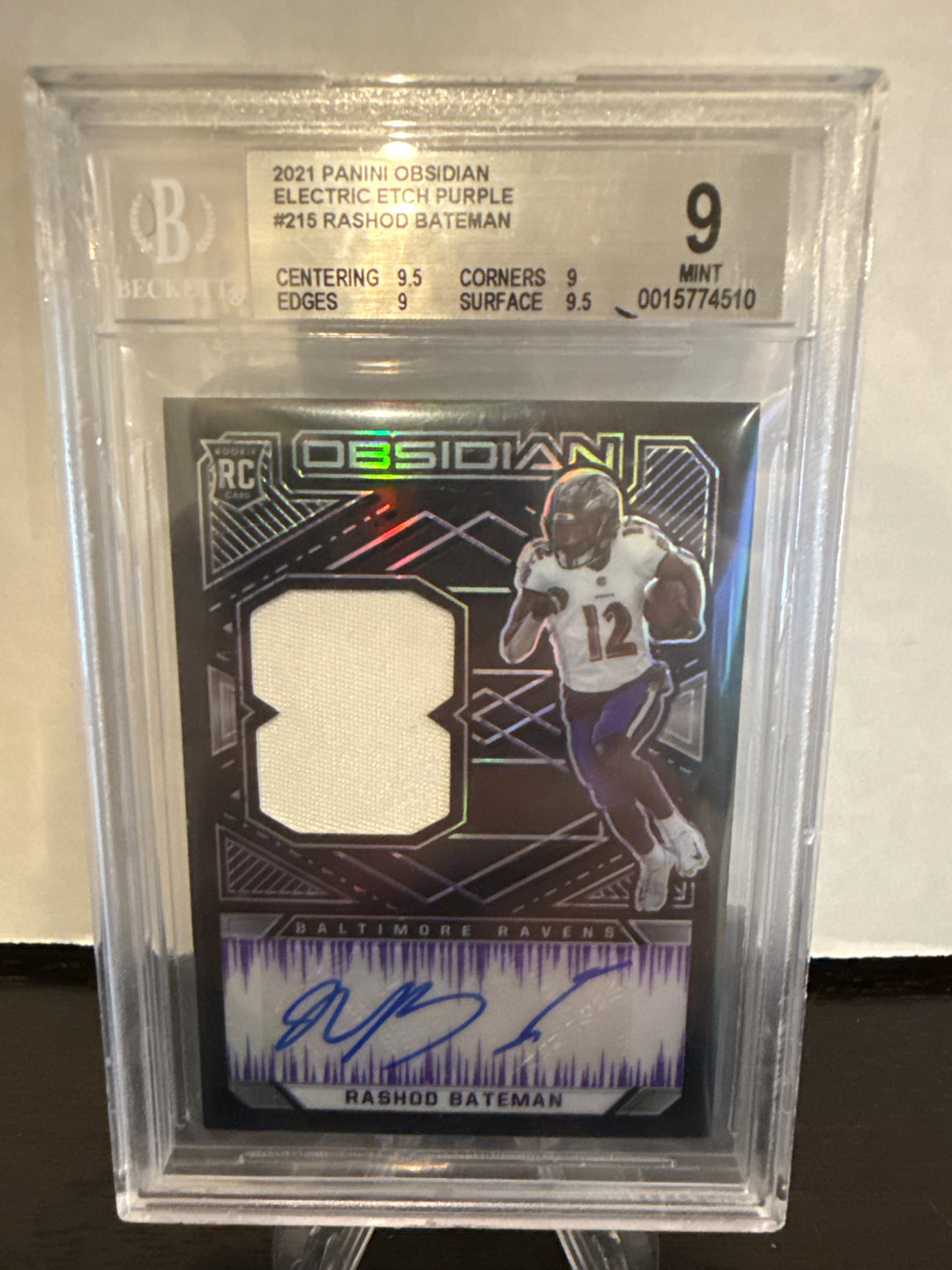 Rashod Bateman 2021 Panini Obsidian Electric Etch Purple Rookie Patch Auto, 38/40, BGS 9 Mint