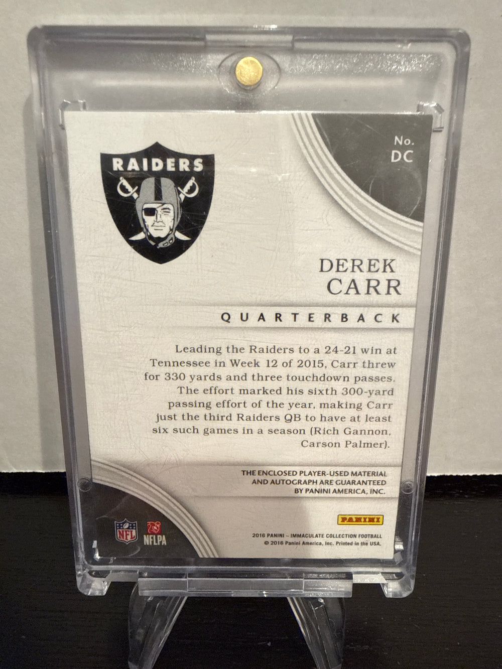 Derek Carr 2016 Panini Immaculate Triple Patch Auto, 21/25