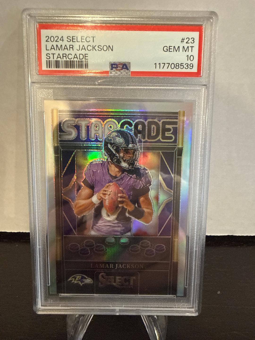 Lamar Jackson 2024 Panini Select Starcade SSP Case Hit, PSA 10 Gem Mint