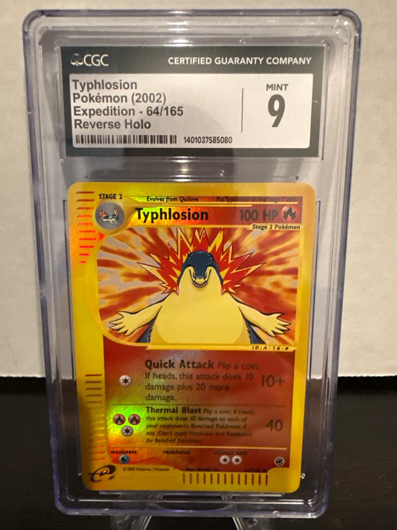 Pokemon TCG 2002 Typhlosion Expedition Reverse Holo, 64/165, CGC 9 Mint CGC Certification 1401037585080Card Stand sold separately.