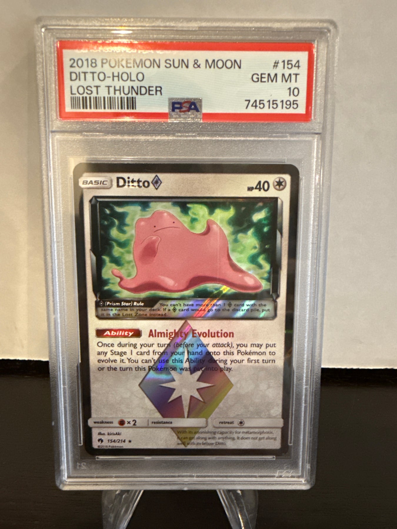Pokemon TCG 2018 Ditto Lost Thunder Holo, 154/214, PSA 10 Gem Mint PSA Certification 74515195Card Stand sold separately.