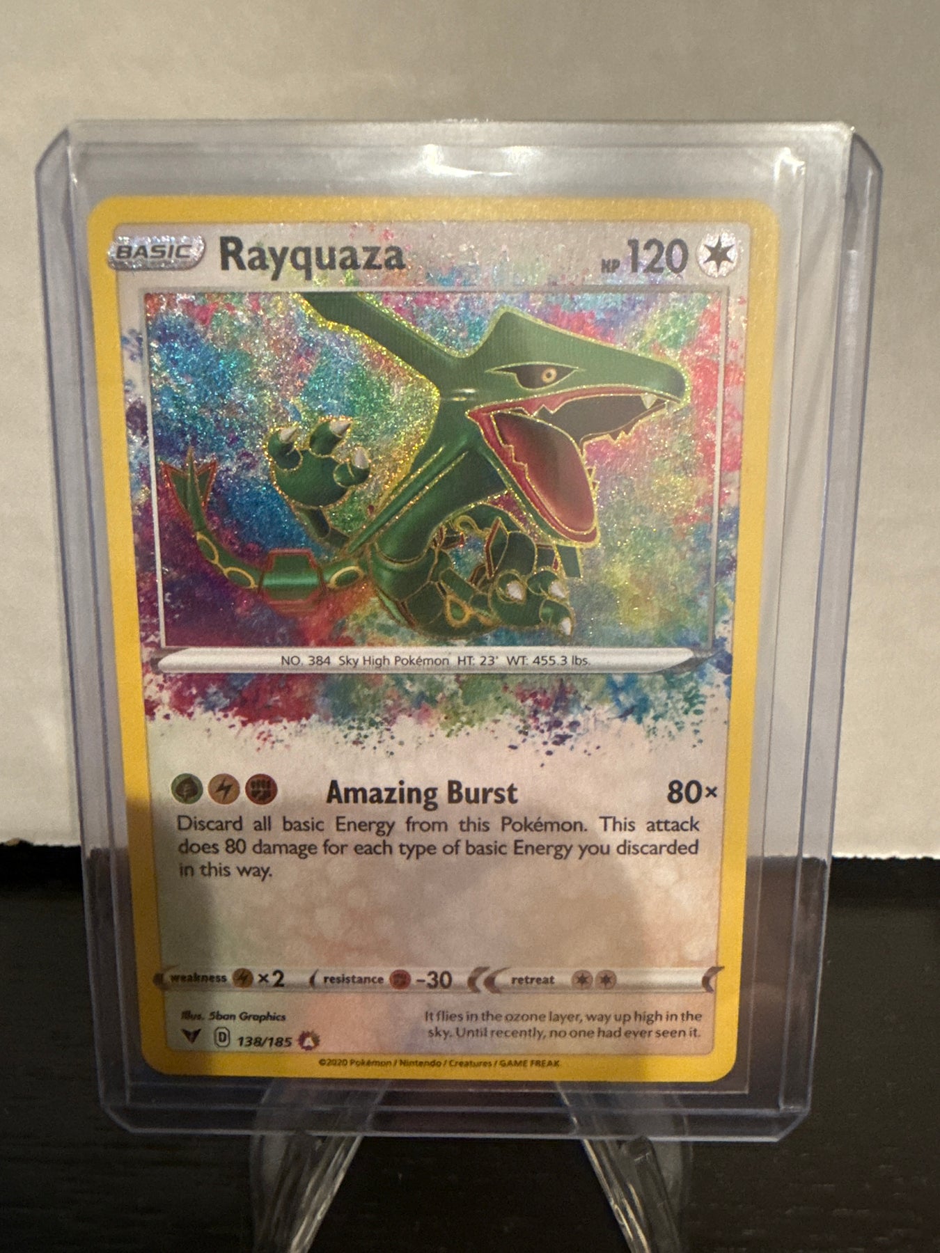 Pokemon TCG 2020 Rayquaza Amazing Rare Vivid Voltage, 138/185 Card Stand sold separately.