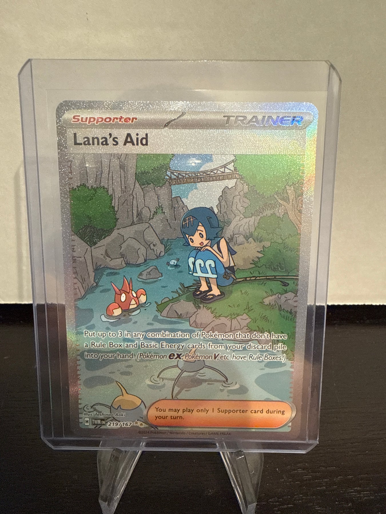 Pokémon TCG 2024 Lana's Aid Trainer Twilight Masquerade Special Illustration Rare, 219/167Card Stand sold separately.