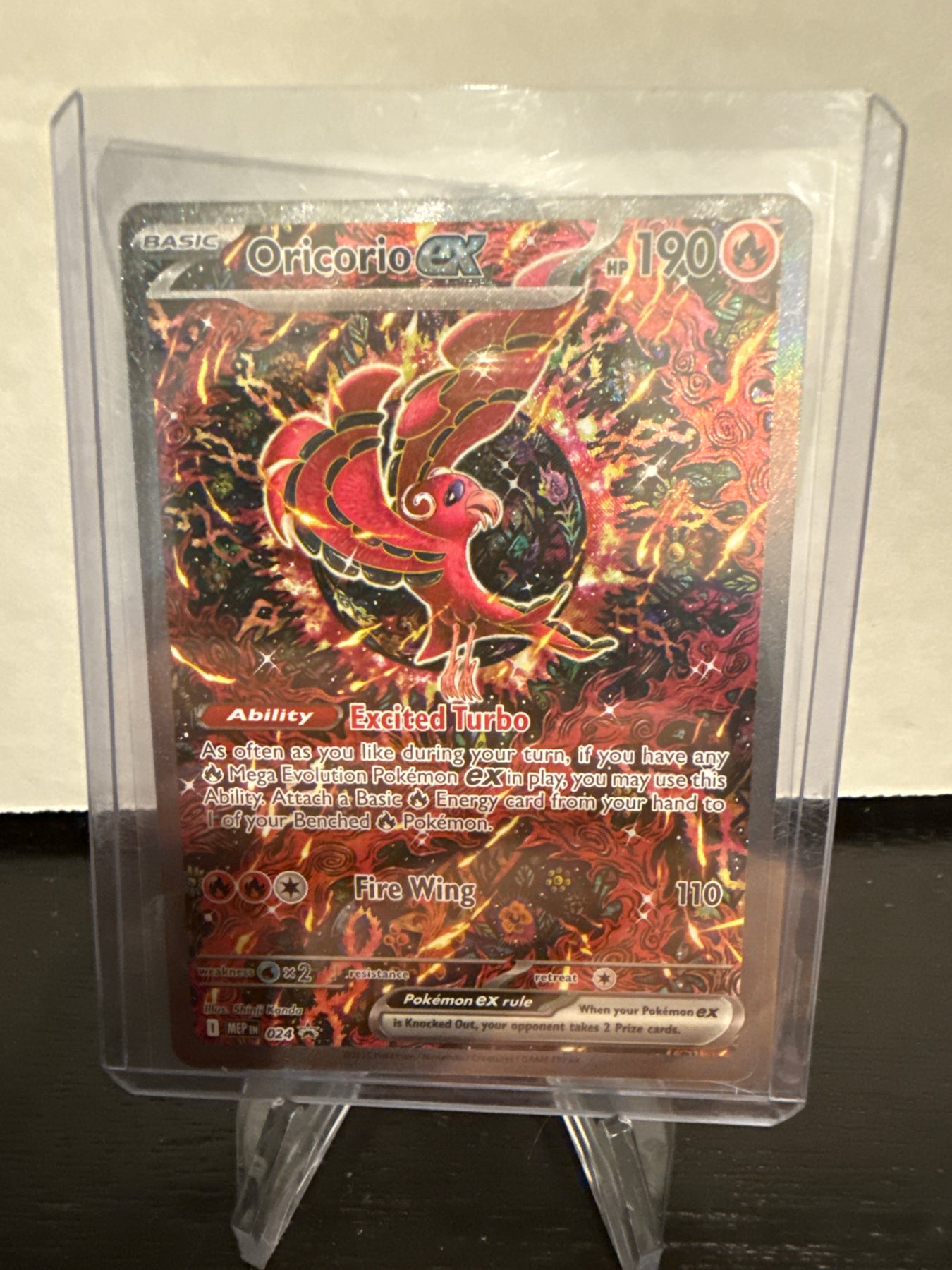 Pokemon TCG 2025 Oricorio EX Mega Evolutions Full Art Black Star Promo, 024Card Stand sold separately.