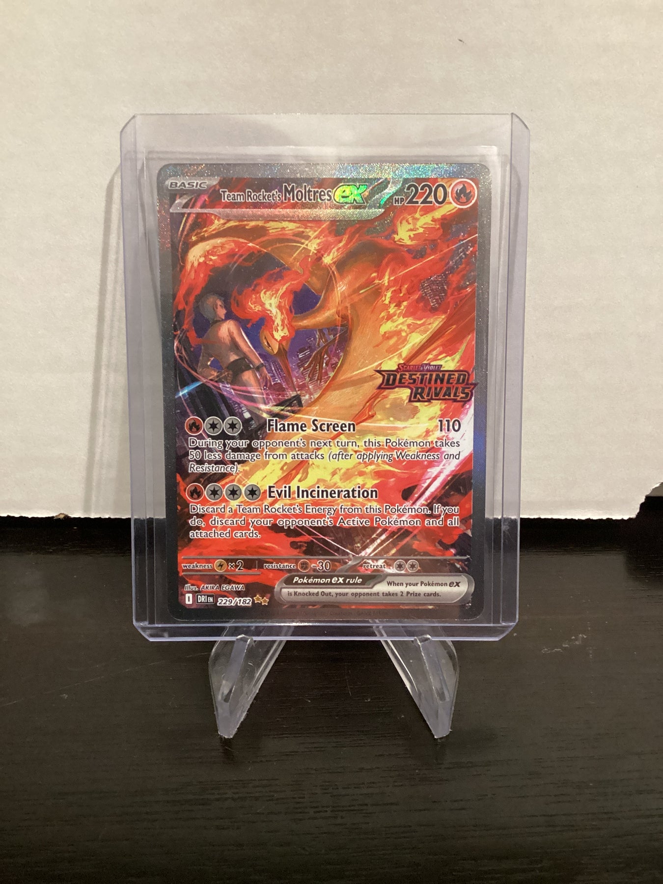 Pokemon TCG 2025 Team Rocket's Moltres EX Stamped Destined Rivals Full Art Illustration Rare, 229/182Card Stand sold separately.