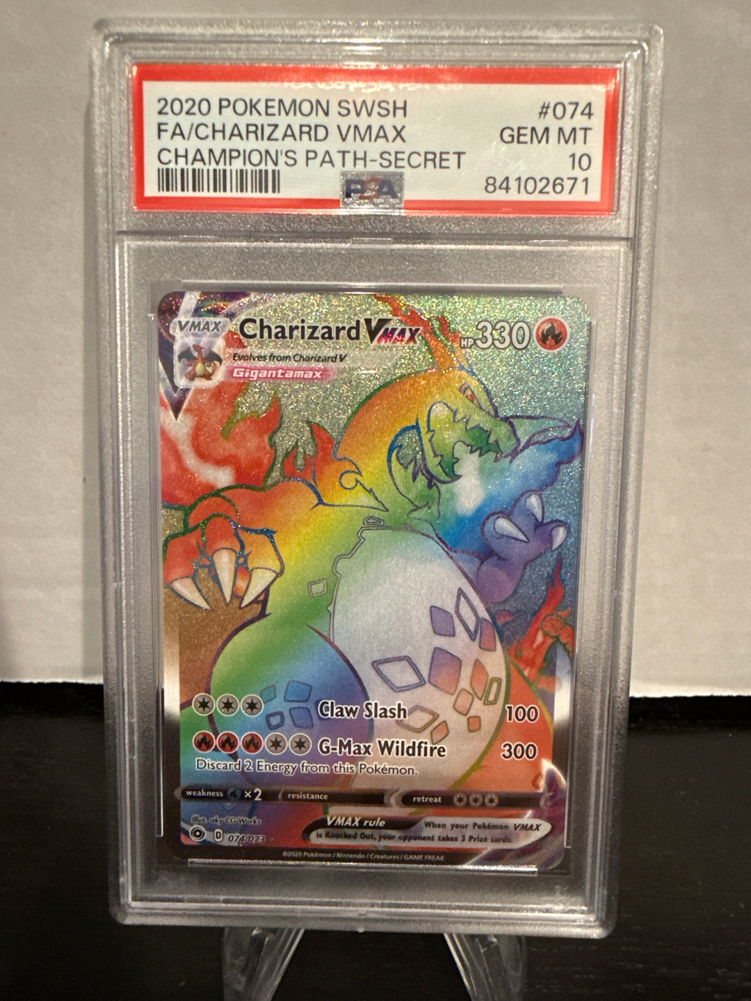 Pokemon TCG 2020 Charizard VMax Champions Path Secret Rare Full Art, 074/073, PSA 10 Gem Mint