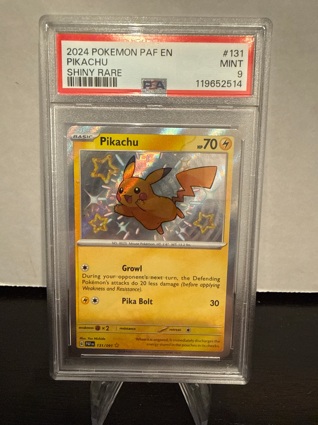 Pokemon TCG 2024 Pikachu Shining Holo Paldean Fates Rare, 131/091, PSA 9 Mint