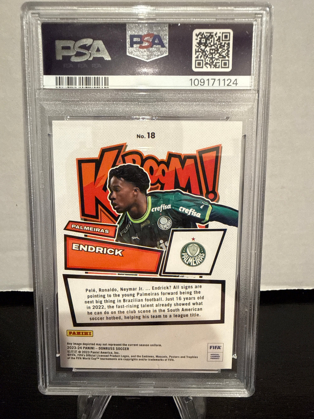 Endrick 2023-2024 Panini Donruss FIFA Kaboom Rookie, PSA 9 Mint