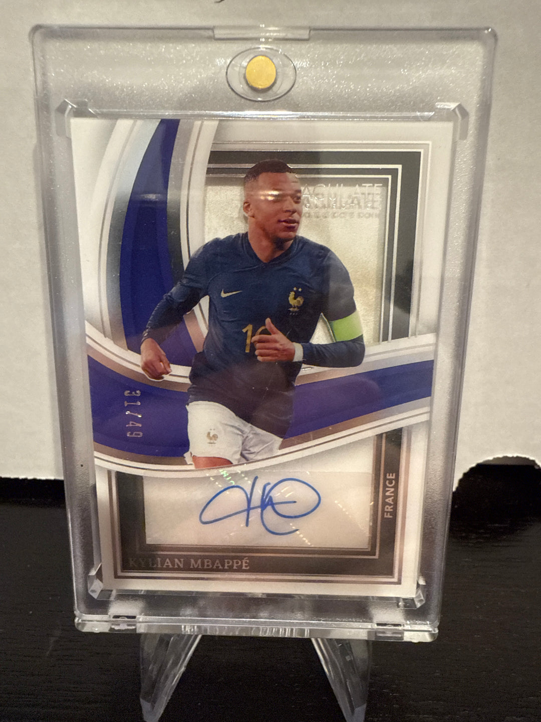 Kylian Mbappe 2023-2024 Panini Immaculate Shadow Box Silver Auto, 31/49