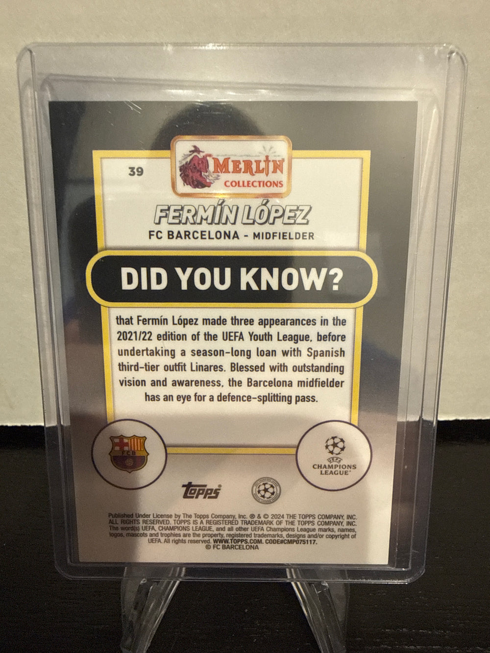 Fermin Lopez 2024 Topps Merlin Chrome Blue Refractor Rookie, 22/75