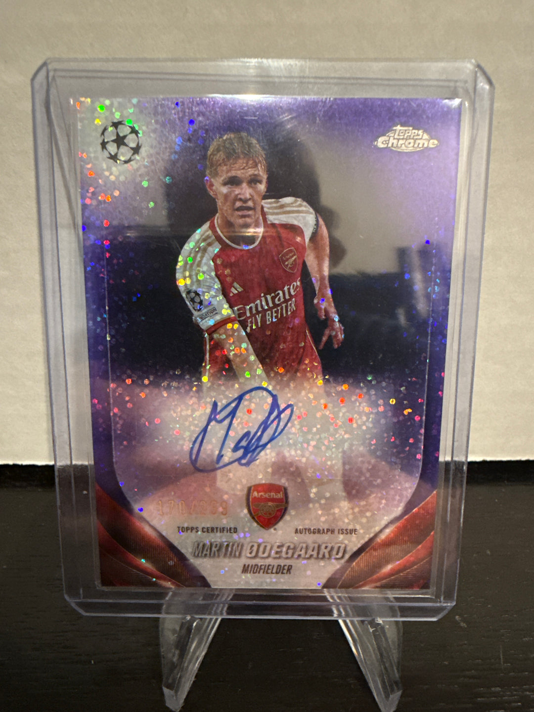 Martin Odegaard 2024 Topps Chrome Champions League Purple Mini Diamond Auto, 170/299