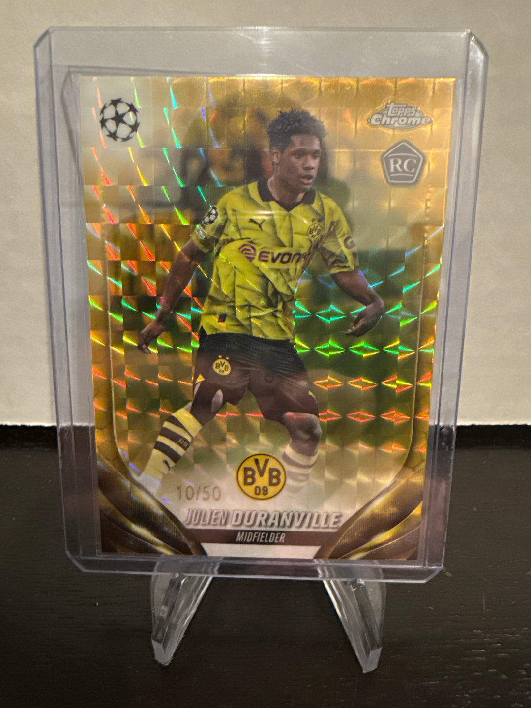 Julien Duranville 2024 Topps Chrome Champions League Gold Geometric Rookie, 10/50
