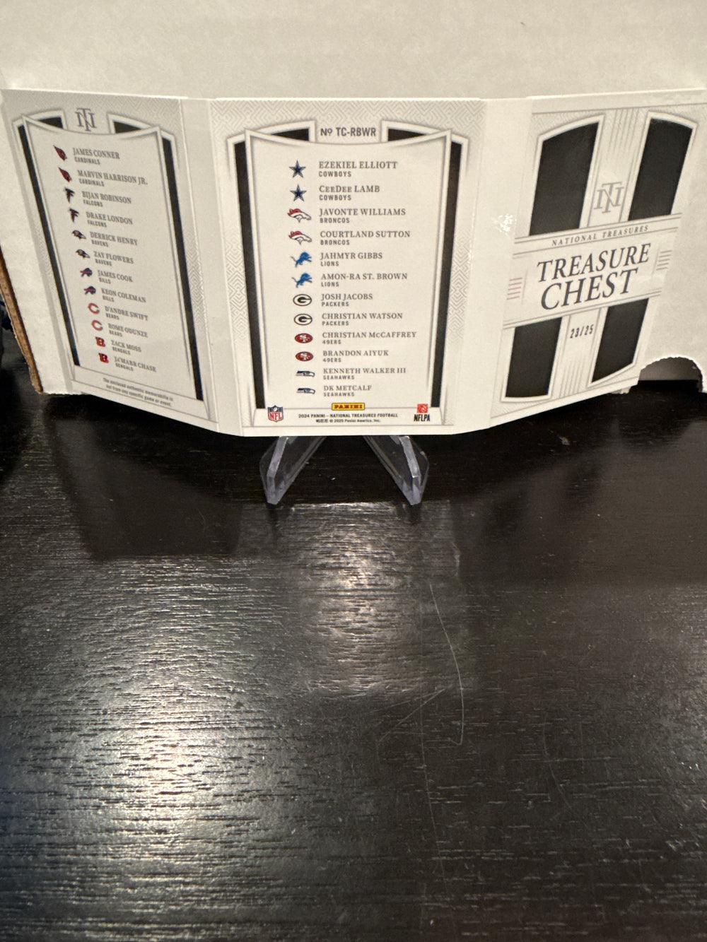 2024 Panini National Treasures Treasure Chest Booklet, Running Back/Wide Receiver, 23/25, Card Number TCRBWRCard Stand sold separately.
