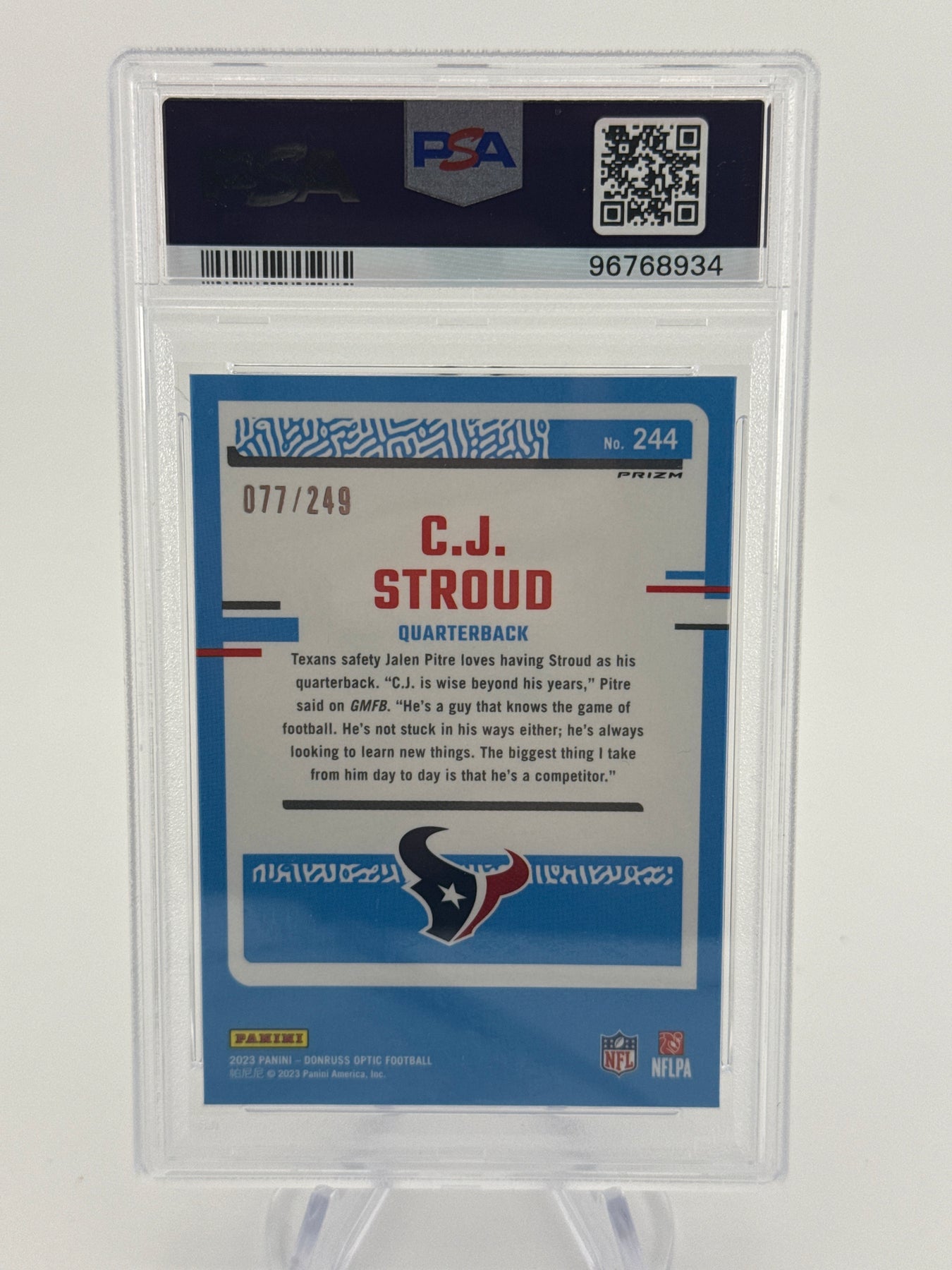 CJ Stroud 2023 Panini Donruss Optic Orange Prizm Rookie, 077/249, PSA 10 Gem Mint, Card Number 244PSA Certification 96768934
