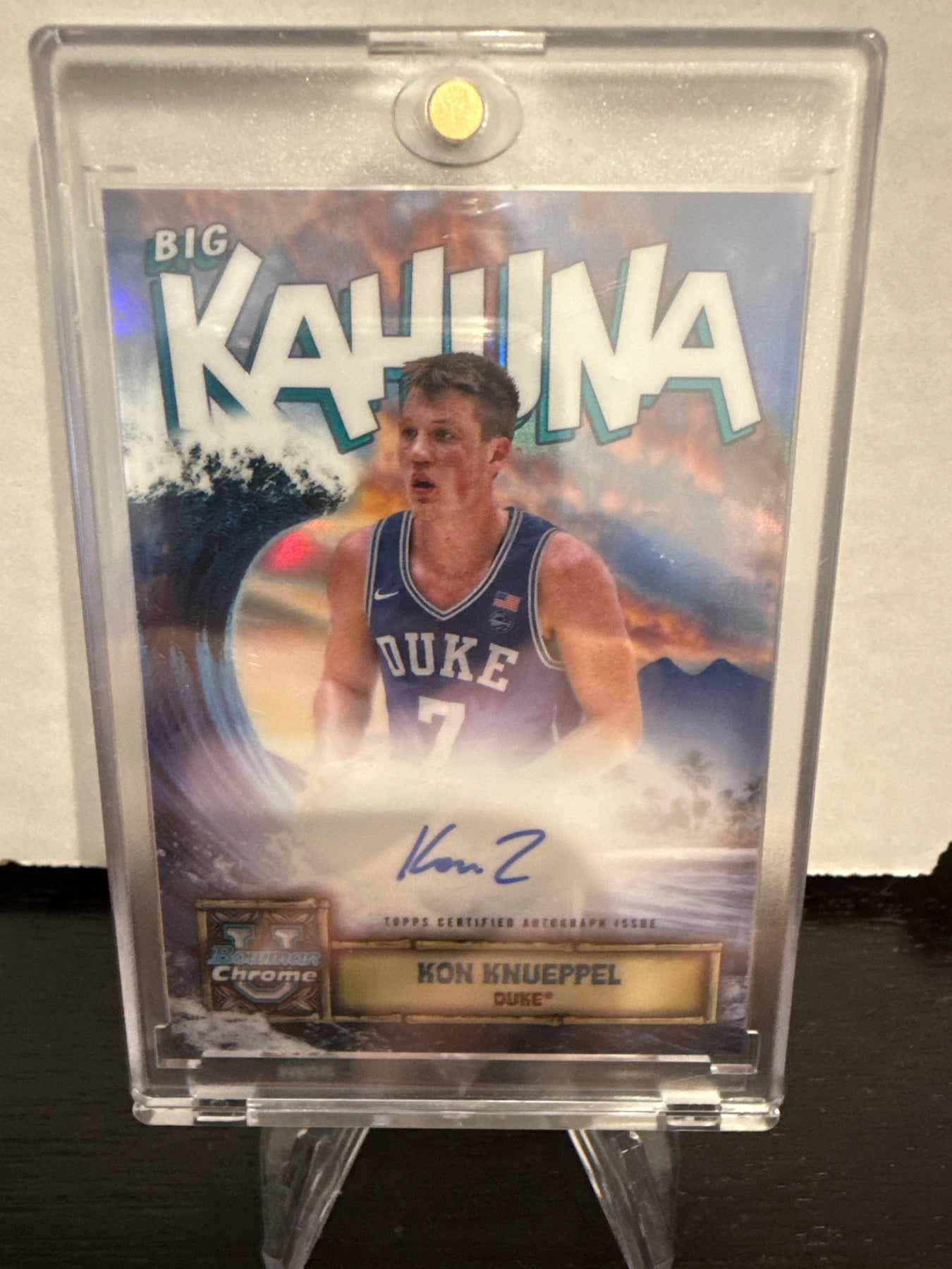 Kon Knueppel 2025 Bowman Chrome University Big Kahuna SSP Auto, Card Number BKAKKCard Stand sold separately.