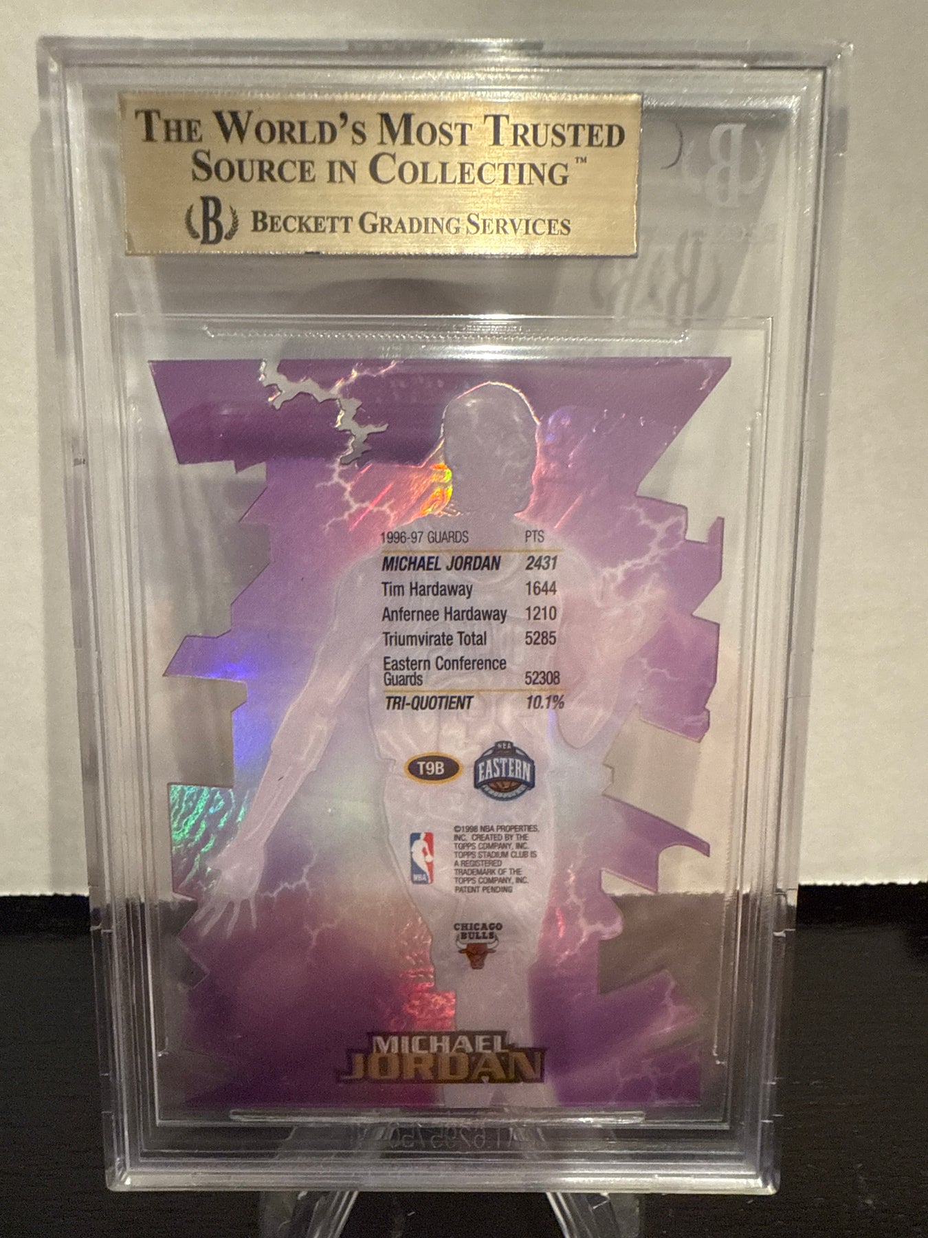 Michael Jordan 1997 Stadium Club Triumvirate Illuminator, BGS 10 Pristine, Card Number T9BBGS Certification 0011451160