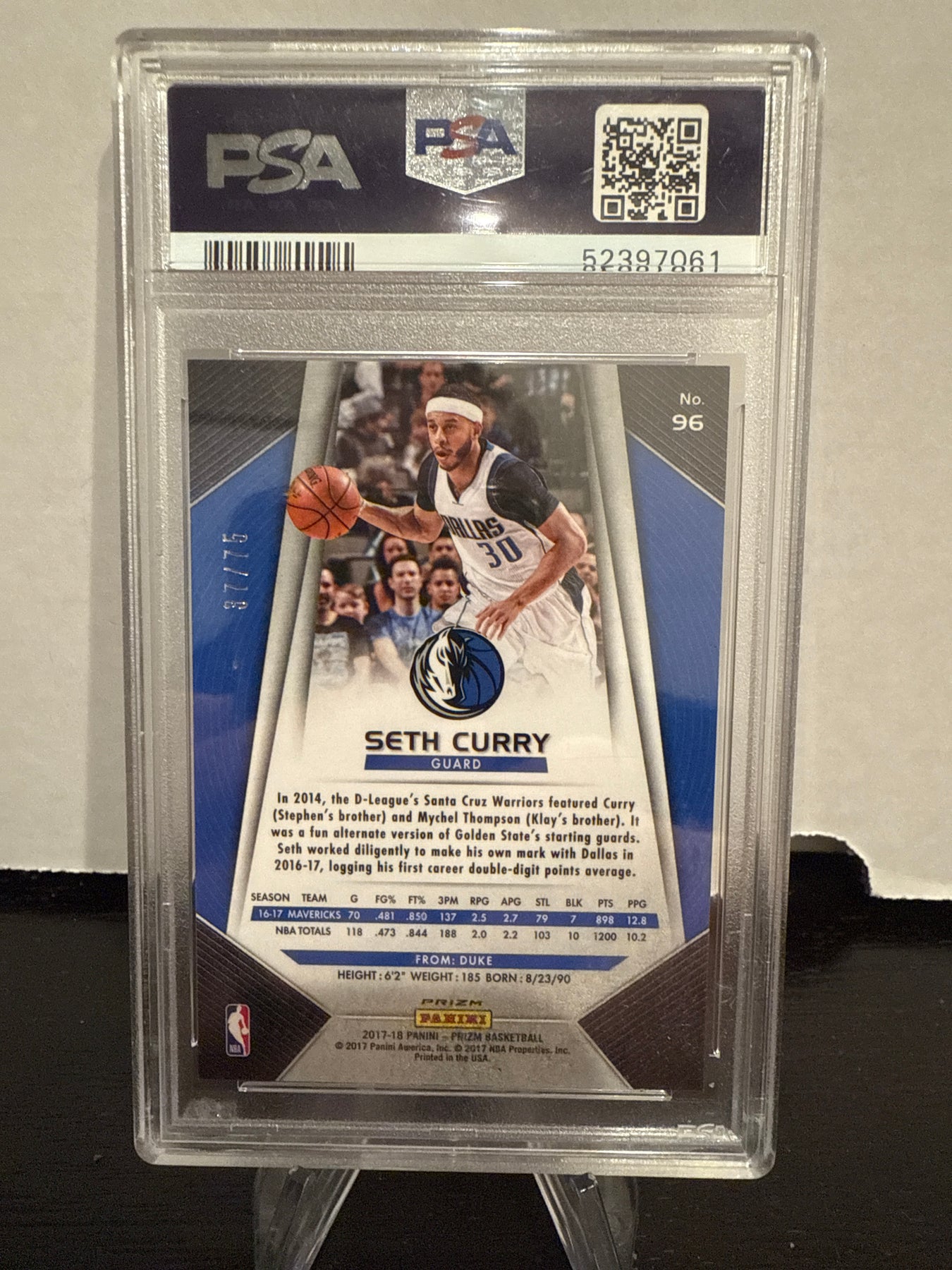 Seth Curry 2017 Panini Prizm Purple Prizm, 37/75, PSA 10 Gem Mint, Card Number 96PSA Certification 52397061
